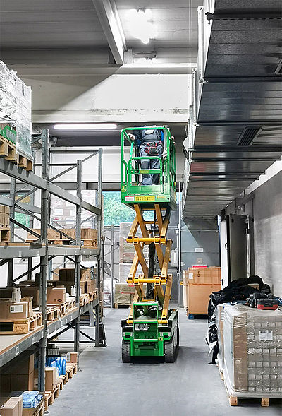 Freundlich, hell und stromsparend. Das ist die neue LED Beleuchtung (Energieffizienzklasse: A++) des bie-dro Lagers. Mit der Firma Luxstream rüsten wir unsere über 350 Lampen um. Die Kombination aus dreifacher Helligkeit bei halb so großem Energiehunger machen die neuen Leuchten so symphatisch! Dies ist ein riesen Schritt Richtung klimaneutrales Unternehmen, da die alten Lagerleuchten einen erheblichen Anteil unserer verbauchten Energie ausgemacht haben.